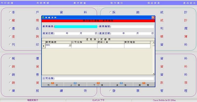 客 戶、廠 商、產 品、員 工、會 計 科 目•••資 料 操 作 介 面